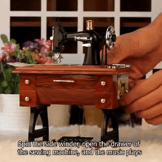 The music played is "Für Elise," a beautiful and recognizable classical melody that adds to the charm and appeal of this sewing music box. And the sewing machine table design makes it a perfect gift for new moms or first-time moms, reminding them of the simpler times with its vintage jewelry box feel.